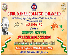 Guru Nanak College, Dhanbad (A Sikh Minority Degree College) was Established by the Gurudwara Prabandhak Committee in 1970 to mark the fifth Birth Centenary of the great Guru after whom this college is named. The college is managed by a Governing Council nominated by the Gurudwara Prabandhak Committee, Dhanbad, and draws its inspiration from the teachings of the faith propounded by Guru Nanak Devji.