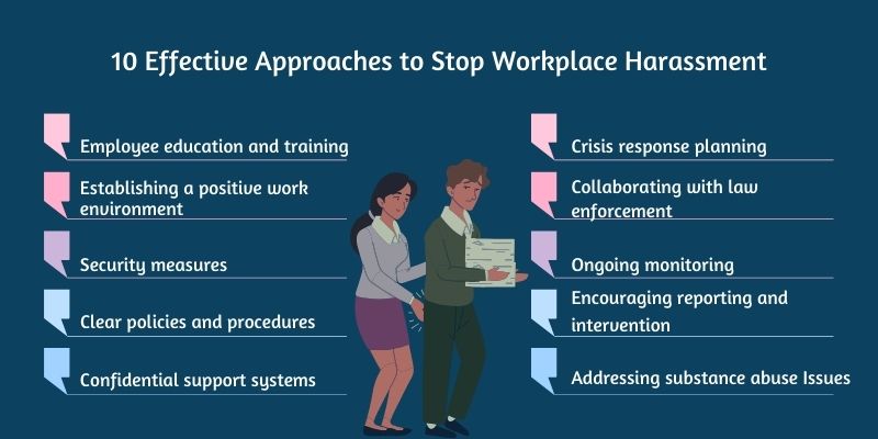 Deal with cases of discrimination and sexual harassment against women, in a time bound manner, aiming at ensuring support services to the victimized and termination of the harassment.